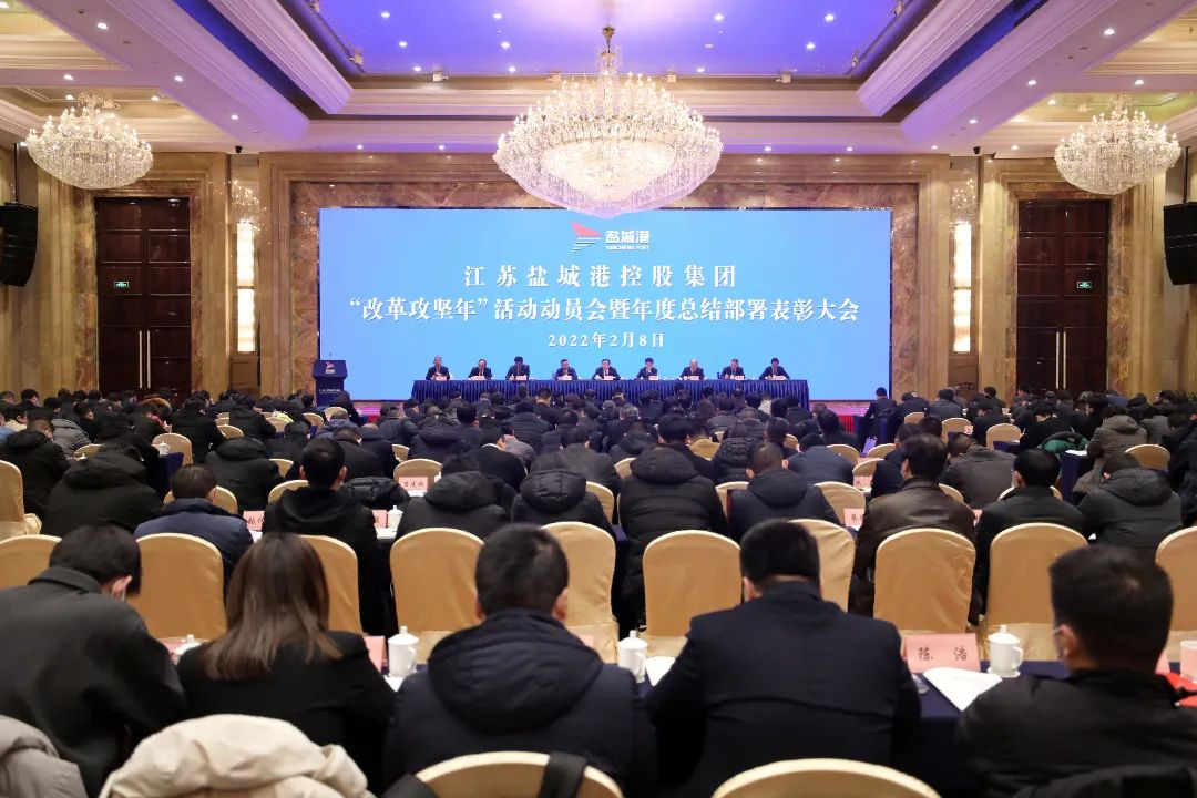 風正揚帆當此時,乘風破浪展雄姿。2月8日,集團召開“改革攻堅年”活動動員會暨年度總結部署表彰大會,堅持以習近平新時代中國特色社會主義思想為指引,深入貫徹落實中央、省委、市委經濟工作會議部署要求,認真總結 2021 年工作,扎實推進2022 年工作,全面組織開展“改革攻堅年”“經營興航年”活動,動員集團上下堅決扛起改革發展新使命,為鹽城勇當沿海地區高質量發展排頭兵展現港口作為。集團黨委書記、董事長、總經理周正雄出席并講話。市國資委副主任成友貴到會指導。